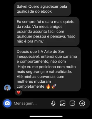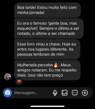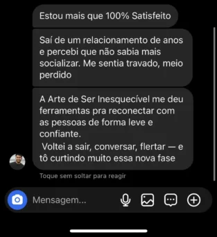 A Arte de Ser Inesquecível nasceu da minha própria transformação, com um único objetivo: ajudar caras como eu a deixarem de ser ignorados e começarem a ser lembrados. Não estou aqui pra me exibir, mas pra entregar o mapa que eu gostaria de ter recebido quando mais precisei. Se você já se sentiu invisível, esse guia é pra você.